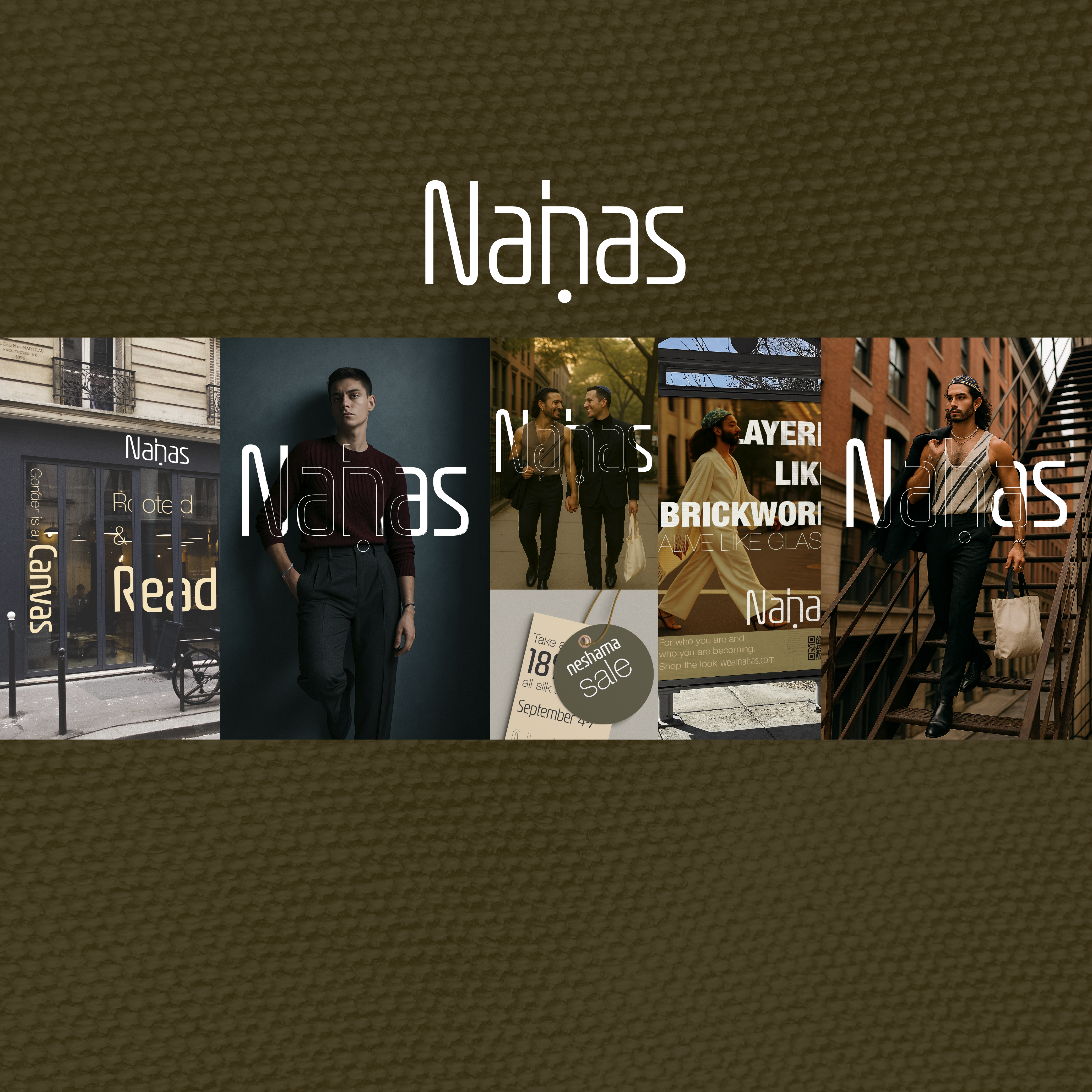 The visual world draws from stonework, scaffolding, glass facades, parchment, and skin — surfaces that carry history, texture, and presence. Typography becomes architectural. Layouts breathe with negative space. The debut campaign, Under Skin, Above the City, frames clothing as a bridge between inner identity and outer world.